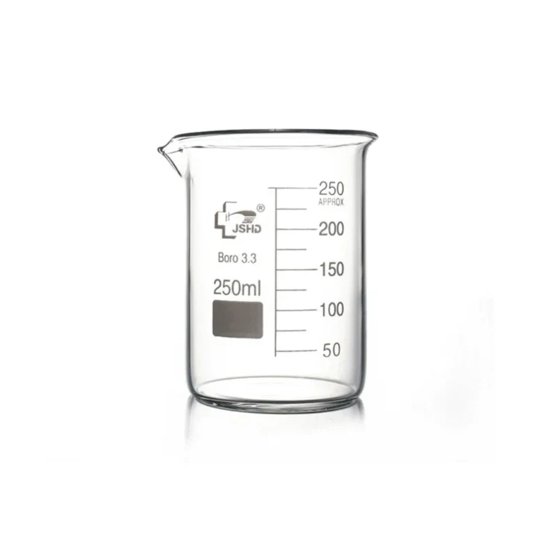 Beaker is a common laboratory container used for mixing, stirring, and heating chemicals. It is usually made of glass or plastic and has a cylindrical shape with a flat bottom and a small spout for easy pouring. Beakers come in various sizes and have volume markings, but they are not used for precise measurements.